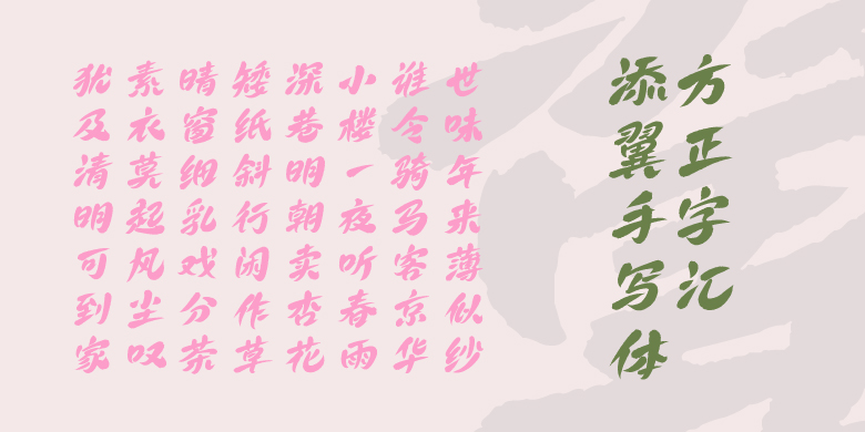 整体字型向右倾斜,具有一定动态感。笔画设计方面较为圆润,起笔收笔粗细变化明显,呈现洒脱俏皮姿态。此款字库为创意字型,适用于影视综艺、电商标题、户外广告、餐饮印刷品等多场合使用。