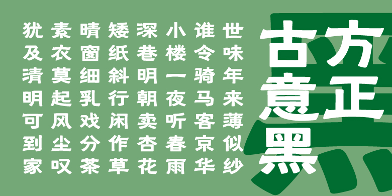设计灵感起初源自碑刻的隶书作品,将方笔隶书的书写感与黑体的现代感相结合,创造具有人文气息的中文黑体设计。字体吸收了隶书笔画中丰厚饱满的动态曲线,特别是波横的起收笔,使字形在视觉上具有向外扩张的感觉,增强了整体的动态美。在部分笔画的设计上,采用对称的设计方式,在保持字形部件识别度与合理性的前提下,赋予字形更多的新鲜感。同时,结合现代黑体的字面比例,在编排过程中展现出极高的适配性,适用于多种场景,包括但不限于书籍出版、海报设计、广告宣传等。